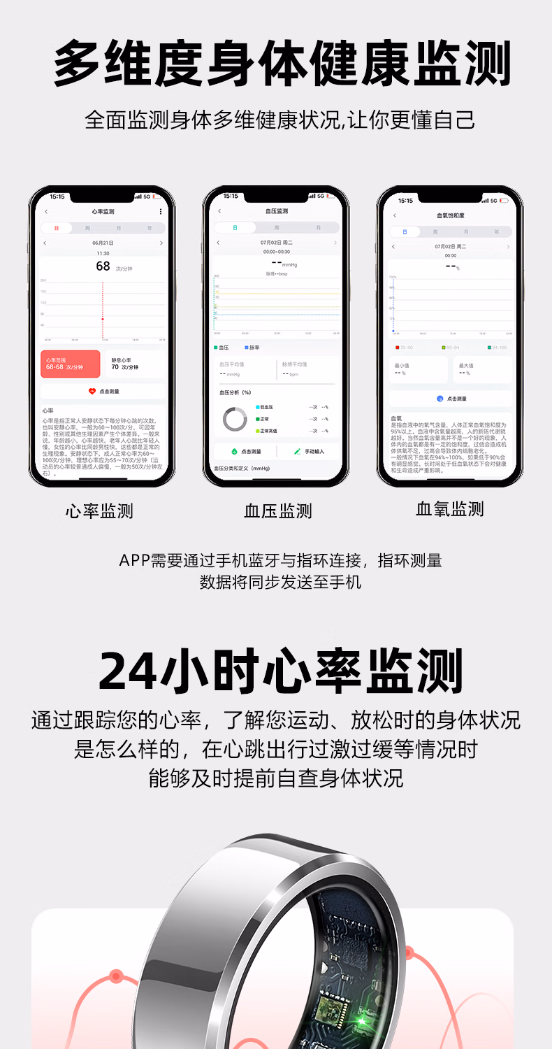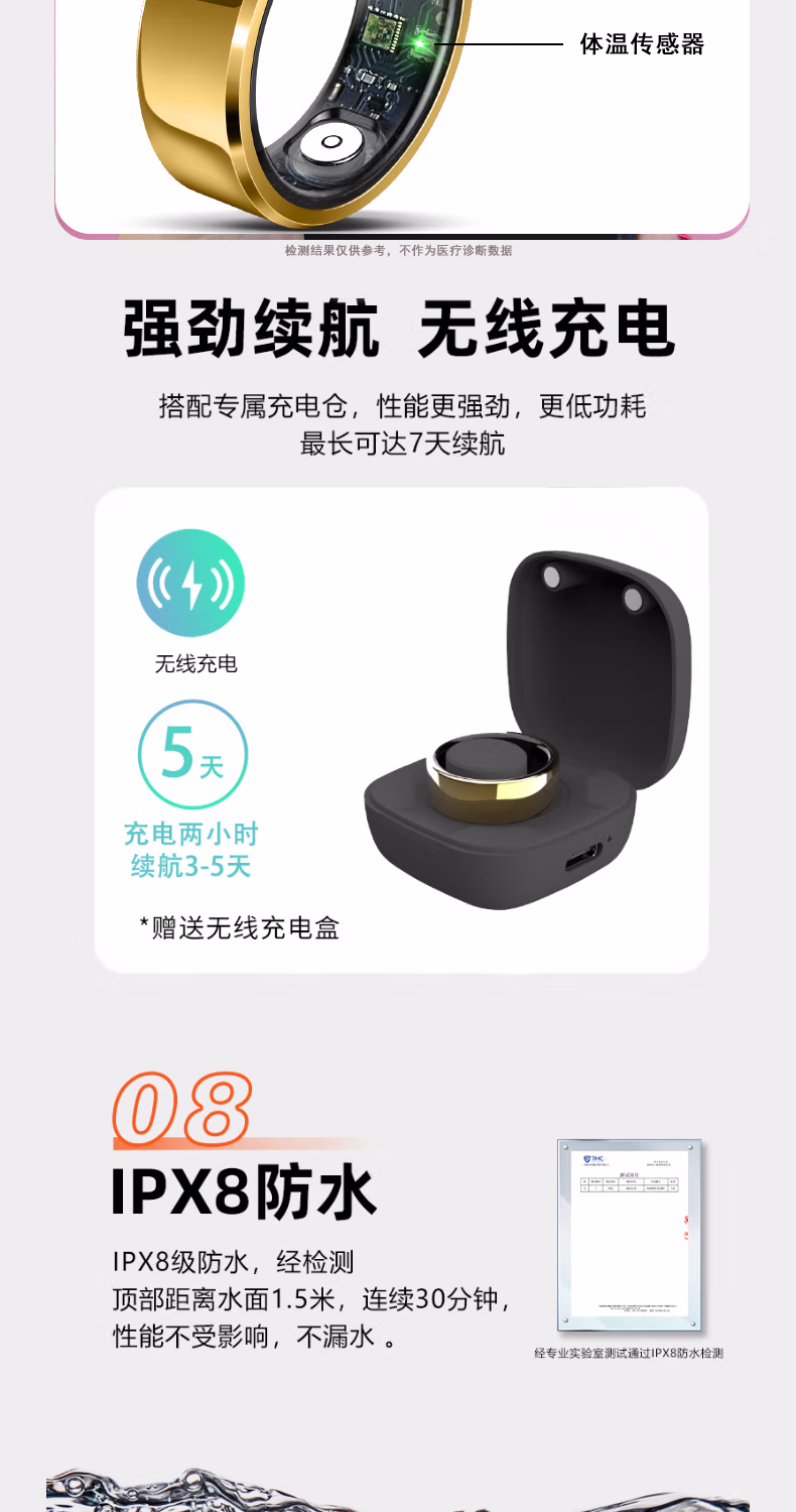 NUIBC黑科技无创血糖智能戒指Ring测血脂尿酸血压心率睡眠血氧体温健康监测指环