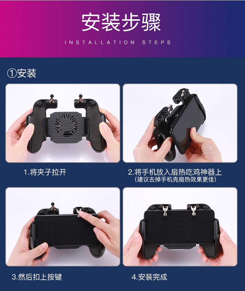 和平散热手游键盘握把刺激精英战场外设一体式射击四指辅助按键游戏手柄绝地求生六指 风扇款【散热吃鸡金属外挂】苹果安卓通用